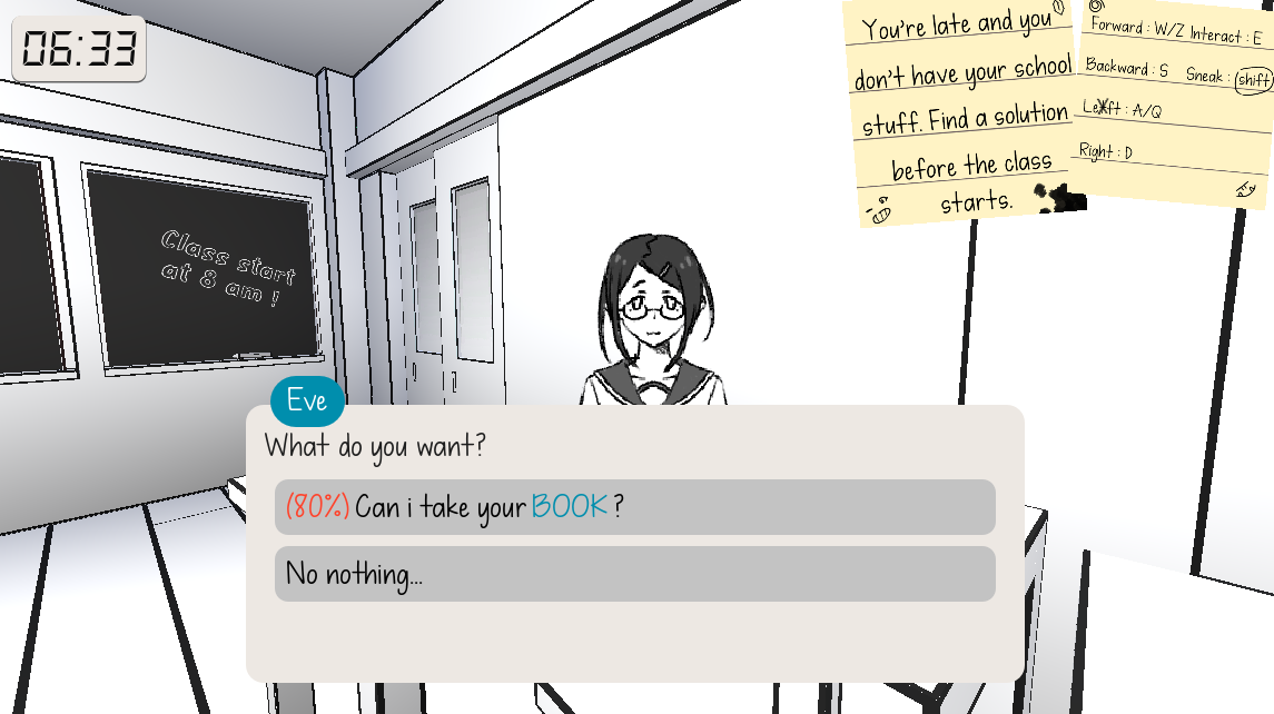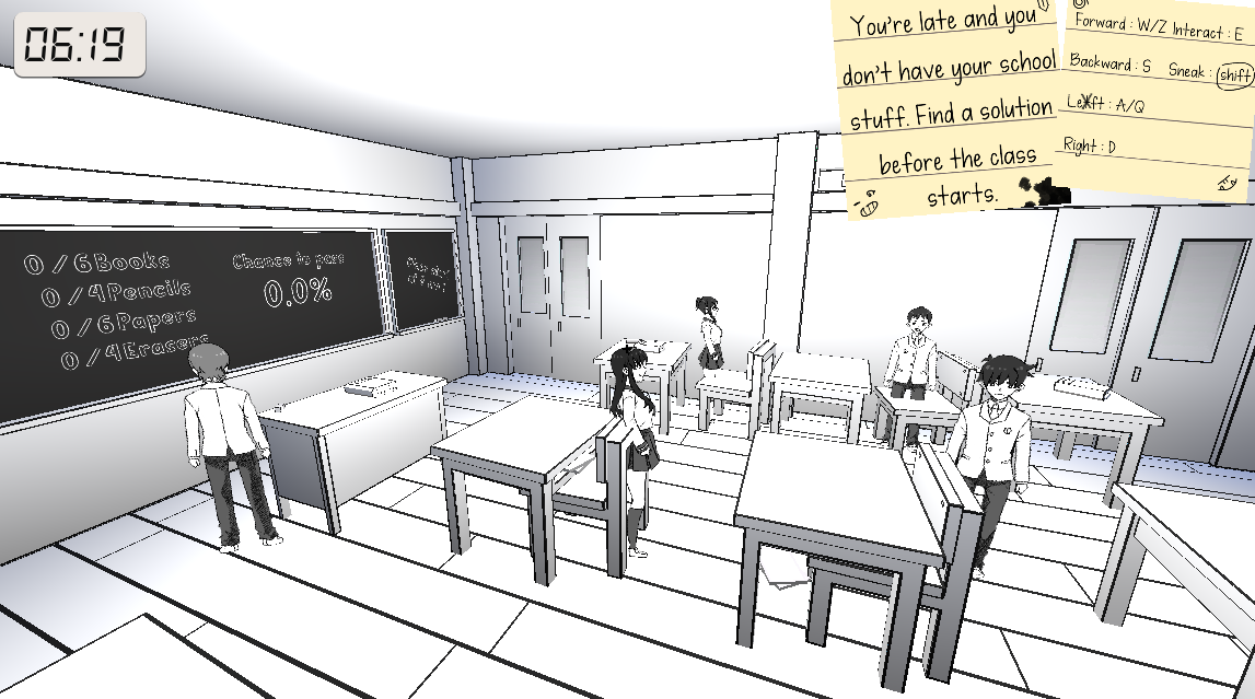 You came late and you forgot your backpack. You have 2 minutes to find some things to pass your exam. Good luck!